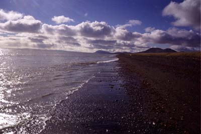 Togiak is a 30 minute flight by prop-plain from Dillingham. Togiak appears as a white blur along the cost in this photo. |