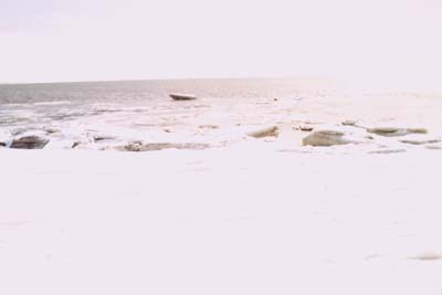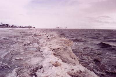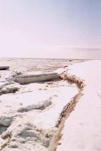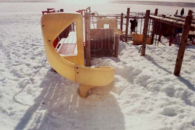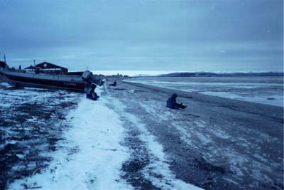 Yup'ik kids entertain themselves by sliding onto the frozen bay. |