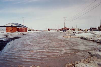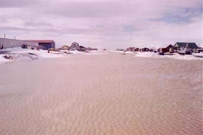Gravel roads connect the houses, and go a mile out of town. There are no roads connecting Togiak with the rest of the world. |